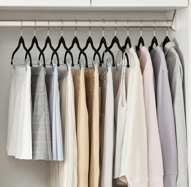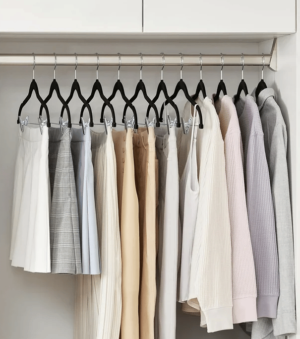 Switching to slim velvet hangers gave me 30% more closet space overnight. Clothes don't slip off, and everything looks uniform.