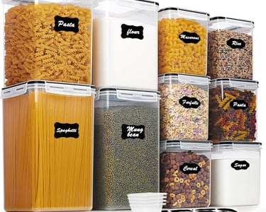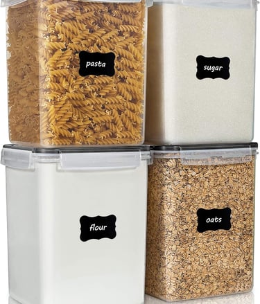 Why it works: You can see exactly how much you have left. Everything stacks uniformly. Food stays fresh longer. The pantry instantly looks more organized.