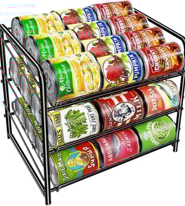 Why it works: No more digging through stacks. See every can you own. First in, first out rotation prevents expiration.