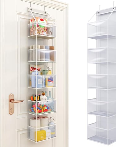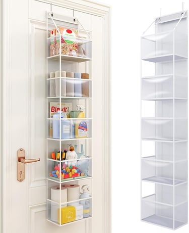 Mounted on inside of pantry door for small items that get lost: spice packets, sauce mixes, tea bags, small snacks.